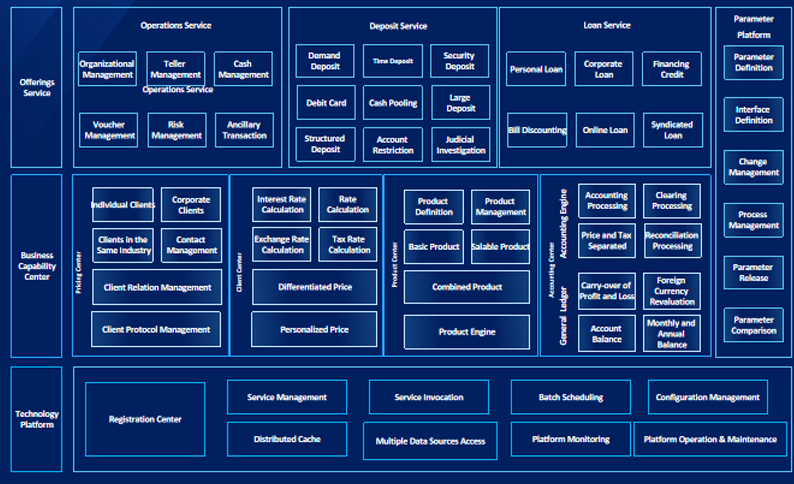 Integration with the concept of middle office, constructing service capability centers such as client center, pricing center, product center and accounting center to realize the sharing of service functions
