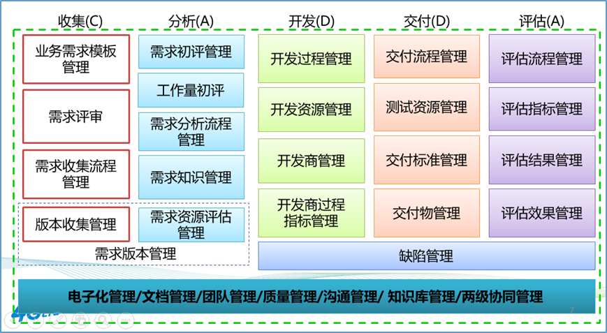 需求管理流程、功能設計流程、 任務開發流程、產品質量流程、 評審流程、變更流程、項目生 命周期流程、風險控制流程、 項目知識與過程資產流程等;/div>