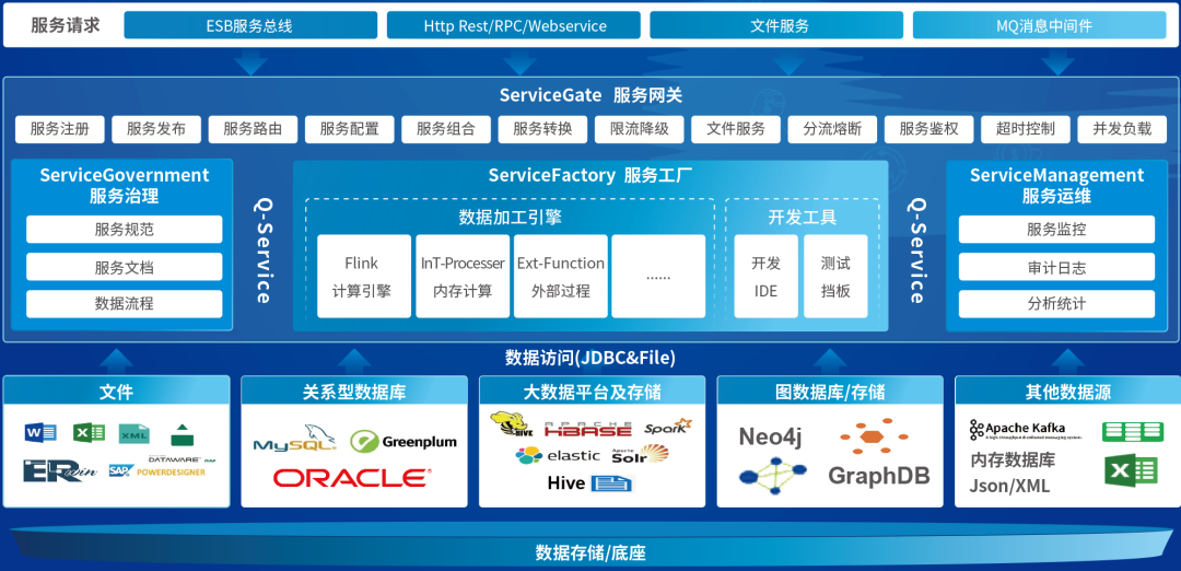 神州信息數(shù)據(jù)服務(wù)平臺基于金融機(jī)構(gòu)現(xiàn)有數(shù)據(jù)資源,為數(shù)據(jù)應(yīng)用端提供高可用、高性能、高并發(fā)、自主、靈活、快速的數(shù)據(jù)發(fā)布、共享服務(wù),進(jìn)而實(shí)現(xiàn)公共基礎(chǔ)數(shù)據(jù)高效使用,提升數(shù)據(jù)服務(wù)集中化、體系化管理。實(shí)現(xiàn)數(shù)據(jù)與應(yīng)用之間松耦合關(guān)系,建立數(shù)據(jù)服務(wù)化、總線化數(shù)據(jù)中臺戰(zhàn)略,實(shí)現(xiàn)數(shù)據(jù)即服務(wù)(DaaS)構(gòu)想。