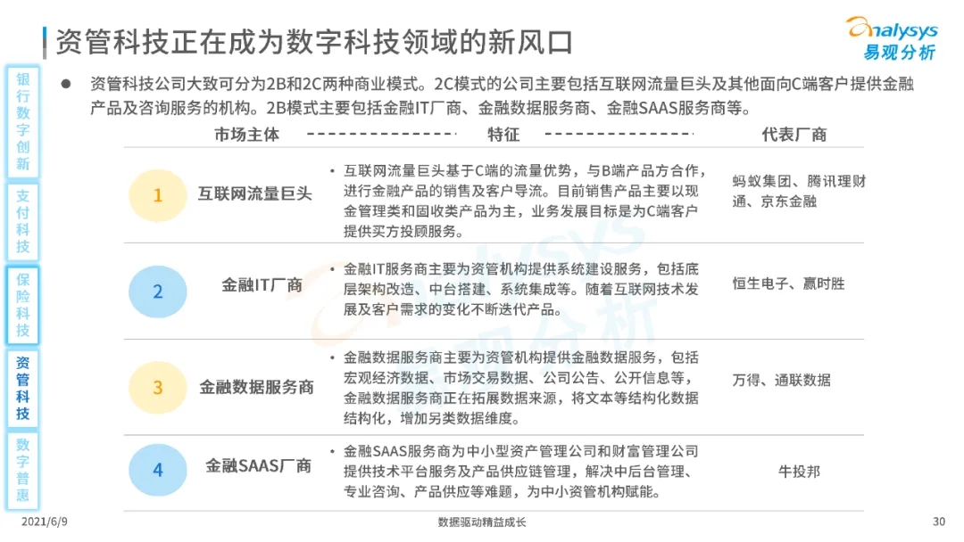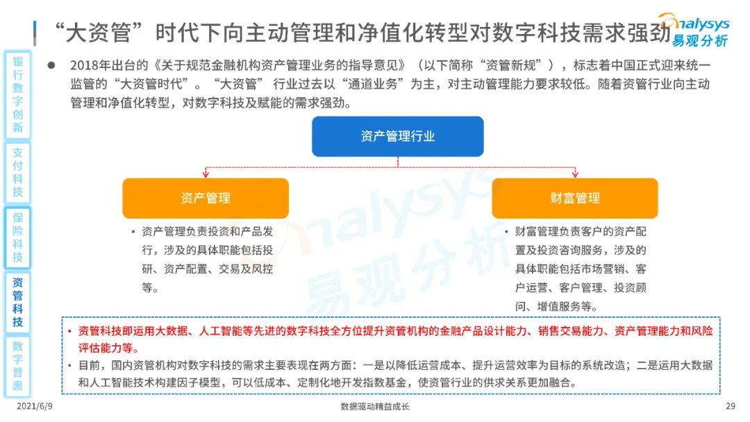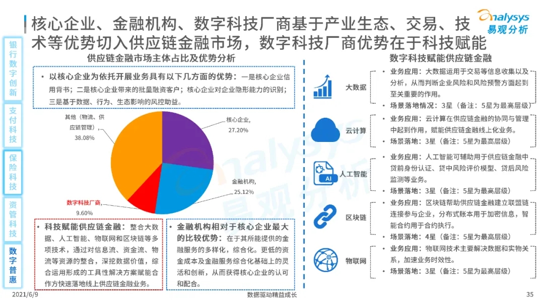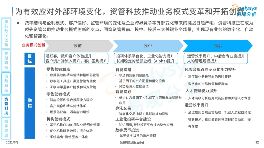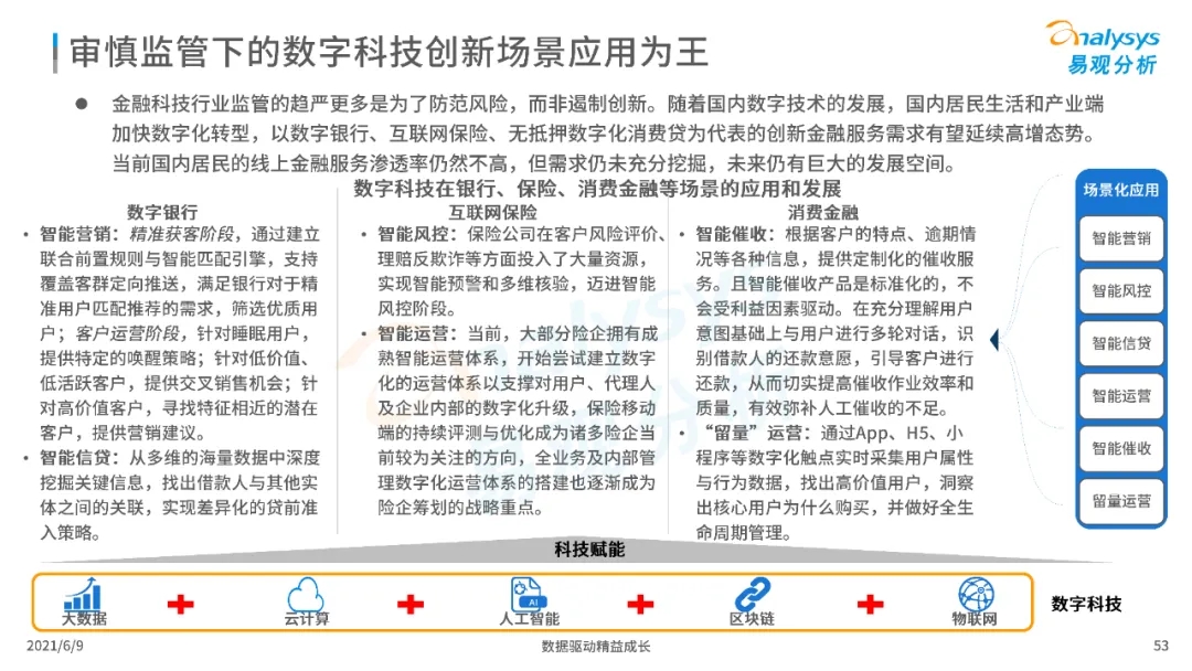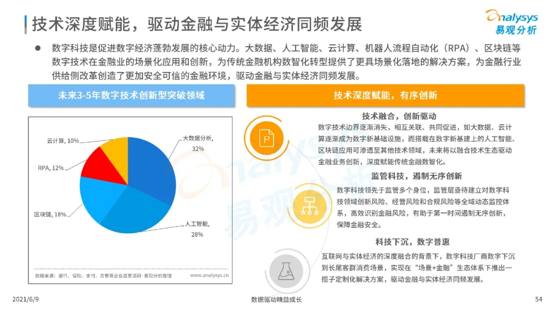 以大數據、人工智能、物聯網、區塊鏈等為代表的數字科技驅動金融產業數字化方興未艾,數字科技使得金融和科技兩個領域產生更緊密的場景聯結,使得數字科技服務可以更早、更有效地介入到金融產業增長模型中去,更早的融入到企業和個人的資產生成過程,并從根本上提升金融機構資產透視能力和資產定價能力,幫助金融機構和實體部門降低成本、提升效率、增強用戶體驗及優化業務模式。