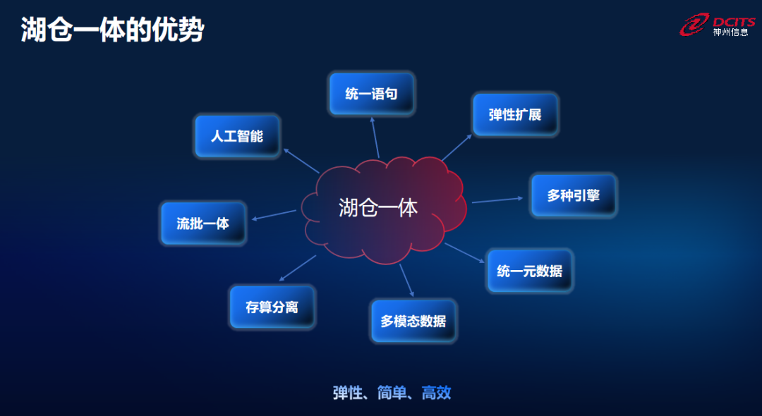 首先,它可以容納多模態的數據,比如音頻、視頻、圖片、文檔等。其次,豐富的計算引擎,簡單的說,就是無論什么樣的數據,都可以相對容易的找到其對應的計算引擎并部署。并且是存算分離的,也就是說,存儲部件和計算部件是分離的,可以各自彈性擴展。流批計算一體。支持人工智能、機器學習。