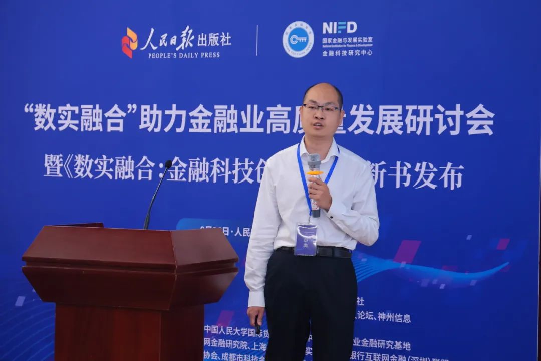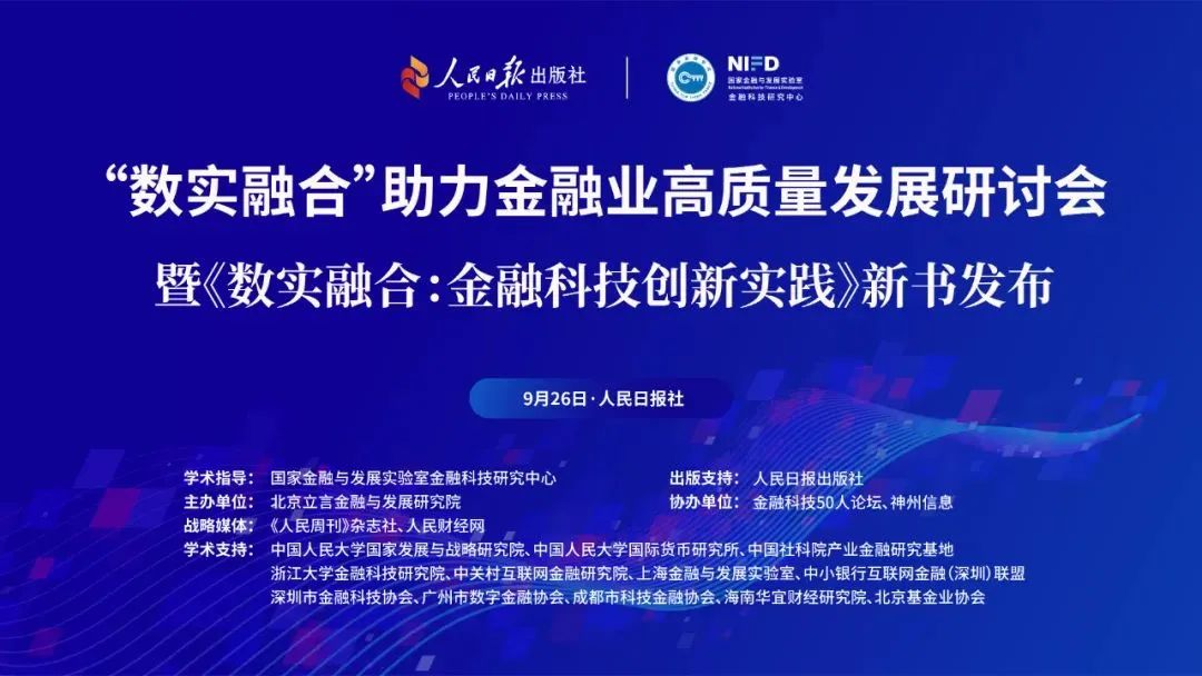 導(dǎo)讀:9月26日,在國家金融與發(fā)展實(shí)驗(yàn)室金融科技研究中心學(xué)術(shù)指導(dǎo),人民日?qǐng)?bào)出版社出版支持下,由北京立言金融與發(fā)展研究院主辦,金融科技50人論壇、神州信息協(xié)辦,中國人民大學(xué)國家發(fā)展與戰(zhàn)略研究院等學(xué)術(shù)機(jī)構(gòu)、協(xié)會(huì)支持的“‘數(shù)實(shí)融合’助力金融業(yè)高質(zhì)量發(fā)展研討會(huì)暨《數(shù)實(shí)融合:金融科技創(chuàng)新實(shí)踐》新書發(fā)布”在北京人民日?qǐng)?bào)社圖書館成功舉辦。來自金融科技領(lǐng)域的多位重磅專家及入圍案例的代表機(jī)構(gòu)進(jìn)行了精彩分享。