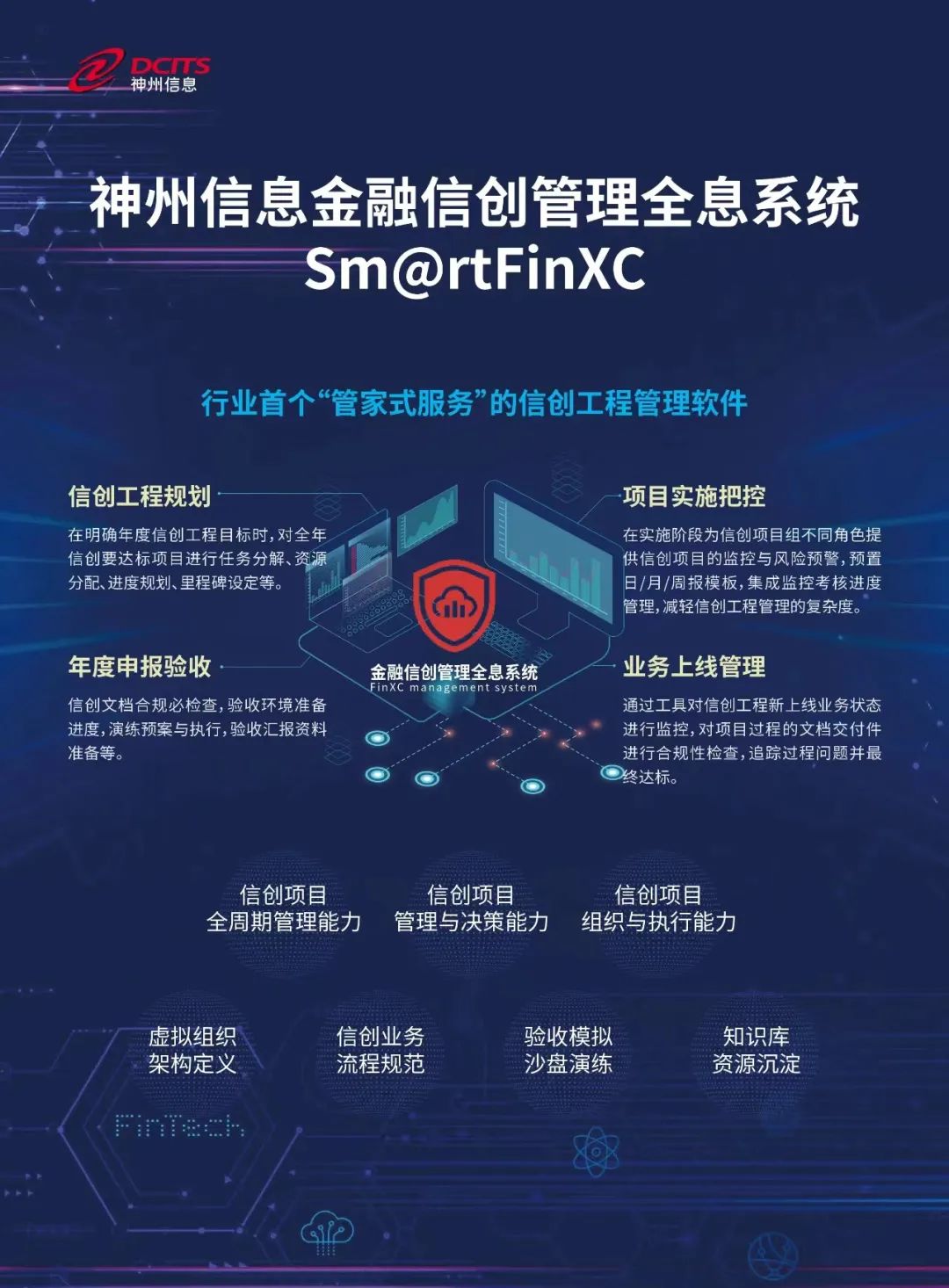 神州信息推出的金融信創管理全息系統(Sm@rtFinXC)榮獲第三屆(2023)“金信通”金融科技創新應用卓越案例。金融信創管理全息系統依托神州信息金融信創專業化管理能力與交付經驗,將金融信創的三大管理要素(項目管理、工程管理、考核點管理)與人員組織架構結合,通過預定義的協同工作流程,圍繞信創年度建設目標打造全年的信創“作戰圖”,實現信創項目的全生命周期管理。為金融客戶提供信創工程的“管家式服務”。