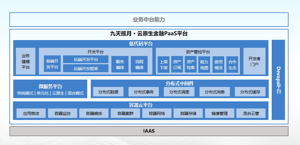 神州信息作為最早一批布局金融系統(tǒng)云原生解決方案的科技企業(yè),已經(jīng)形成了一套適配銀行數(shù)字化轉(zhuǎn)型的金融“云原生”架構(gòu)平臺——“九天攬月云原生金融PaaS”平臺。