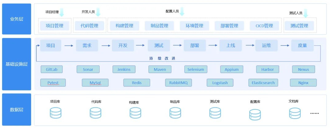● 測試管理:提供一站式測試管理服務,主要包括測試過程與自動化測試管理兩大塊內容。覆蓋測試用例及缺陷管理、測試質量分析、開源軟件及自主研發測試工具的統一調度,幫助用戶高效管理測試活動,保障產品高質量交付