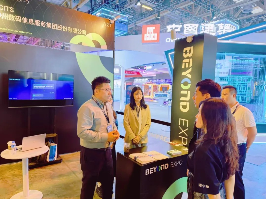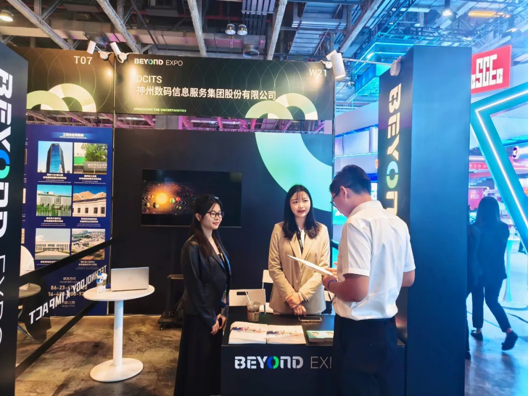 圖為神州信息在第四屆BEYOND國際科技創(chuàng)新博覽會現(xiàn)場進(jìn)行講解