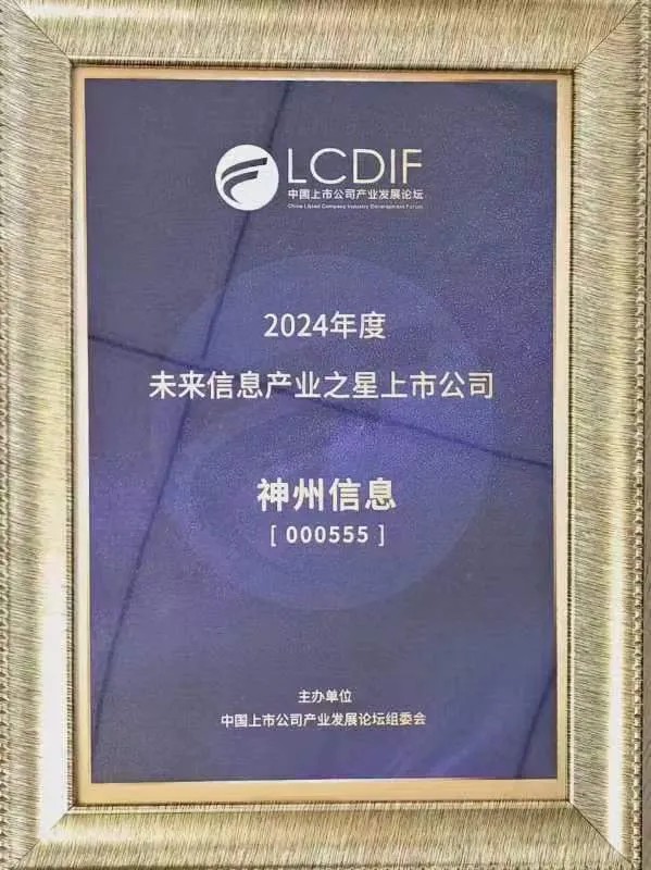 6月,第二屆中國上市公司產業發展論壇期間,“未來產業之星”上市公司榜單正式對外發布。神州信息憑借在金融科技領域的持續深耕,獲得了“2024年度未來信息產業之星上市公司”榮譽稱號,體現了資本市場對神州信息未來發展潛力的高度認可。