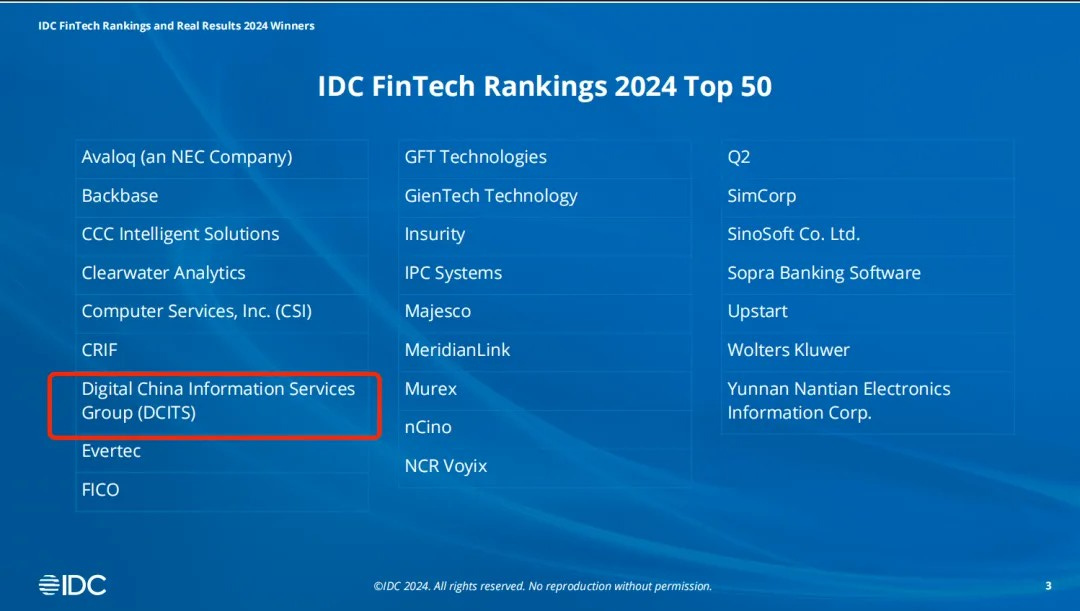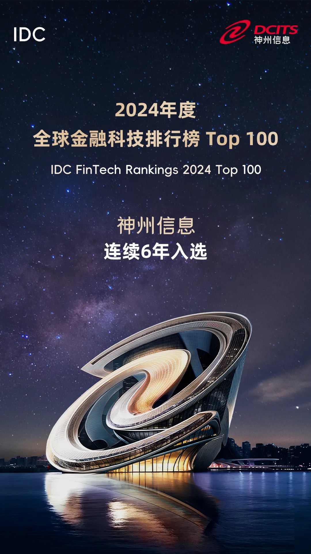 2024年度 IDC 全球金融科技百強榜(IDC FinTech Rankings Top 100)正式揭曉,神州信息連續6年入選,位列 TOP 50。