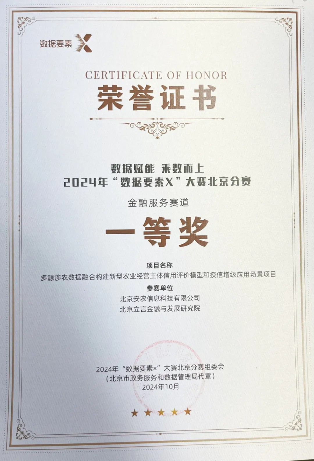 安農(nóng)信科團隊此前在“數(shù)據(jù)要素×”北京分賽區(qū)獲金融服務賽道一等獎